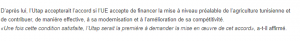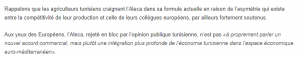 Interrogé par la chaine privée Elhiwar Ettounsi sur la position de l’Union tunisienne de l’agriculture et de la pèche (Utap) vis-à-vis de l’Accord libre échange complet et approfondi (Aleca) en cours de négociation entre la Tunisie et l’Union européenne (UE) , Abdelmagid Ezzar ,président de l’Utap, a déclaré que celle-ci ne rejette pas l’accord dons son principe mais réfute sa mouture actuelle …..
