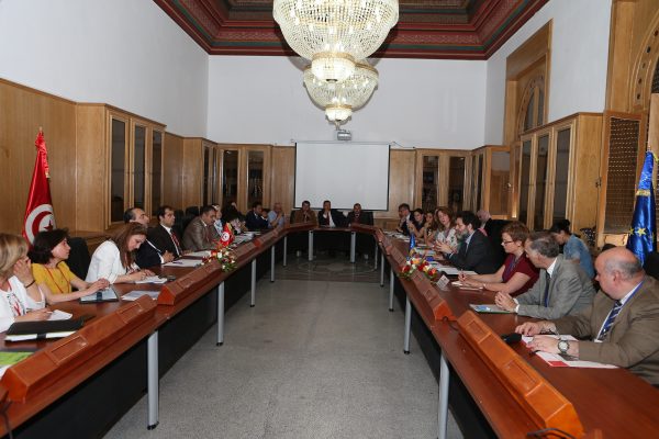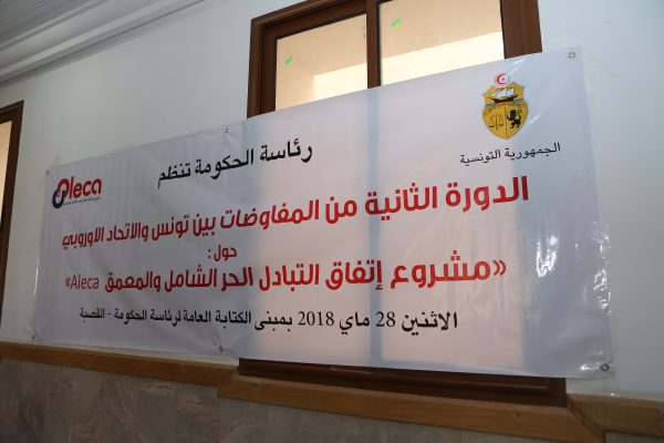 En marge des travaux du 2ème round des négociations entre la Tunisie et l’ UE sur l’ALECA qui s’est tenu du 28 au 31 mai 2018 à Tunis, sous la présidence de M. Hichem Ben Ahmed, Secrétaire d’Etat au commerce extérieur et Chef négociateur de l’ALECA du côté tunisien et de M. Ignacio Garcia Bercero, Directeur à la Commission européenne du côté européen, la Présidence du gouvernement a organisé une rencontre avec les représentants de la société civile le lundi 28 mai 2018 en présence des négociateurs tunisiens et européens