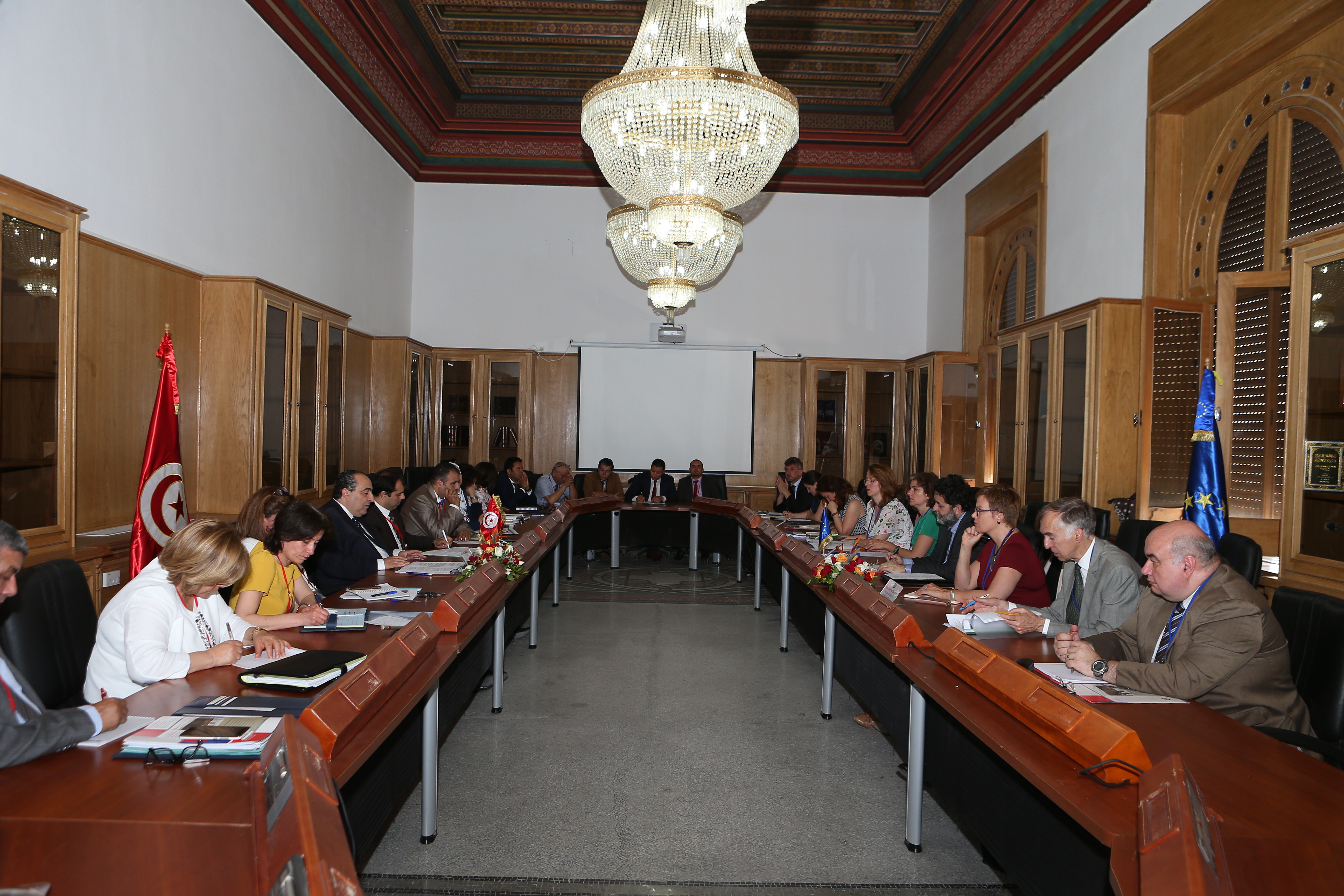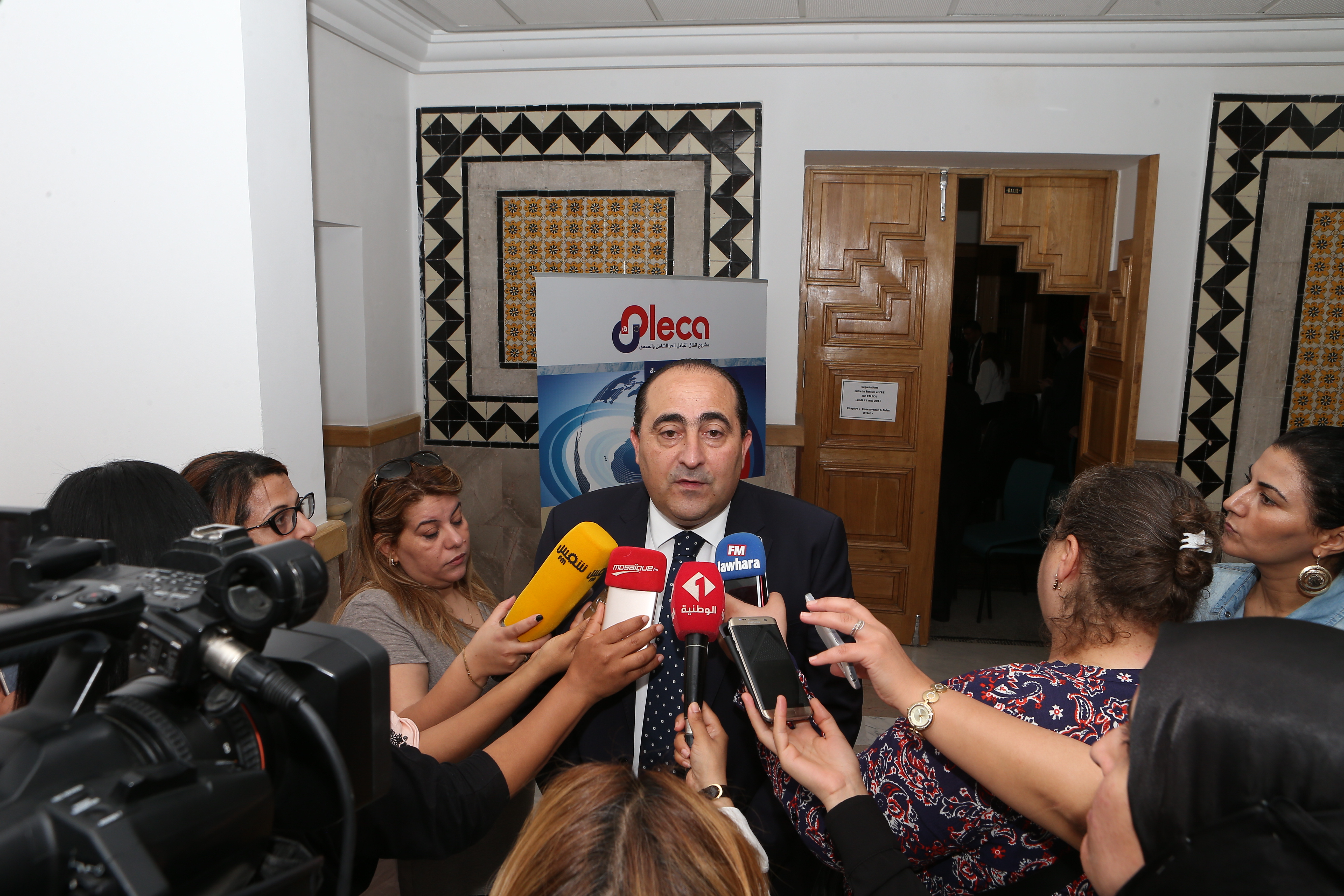 En marge des travaux du 2ème round des négociations entre la Tunisie et l’ UE sur l’ALECA qui s’est tenu du 28 au 31 mai 2018 à Tunis, sous la présidence de M. Hichem Ben Ahmed, Secrétaire d’Etat au commerce extérieur et Chef négociateur de l’ALECA du côté tunisien et de M. Ignacio Garcia Bercero, Directeur à la Commission européenne du côté européen, la Présidence du gouvernement a organisé une rencontre avec les représentants de la société civile le lundi 28 mai 2018 en présence des négociateurs tunisiens et européens